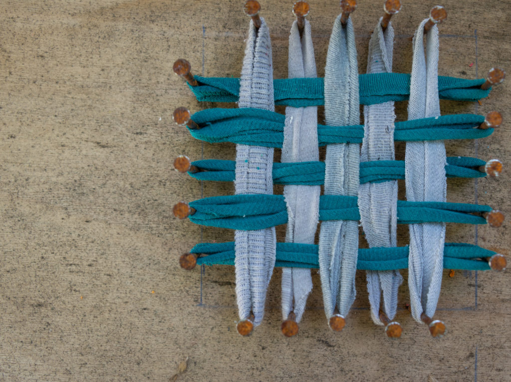 - Enfilez une partie des tissus sur un côté du métier à tisser et l’autre partie sur le côté opposé de la machine