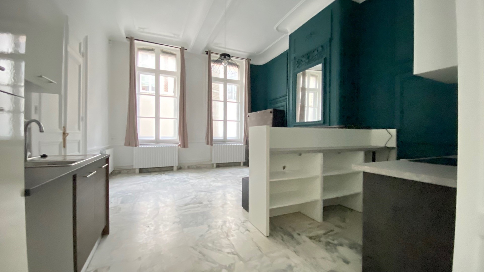 Nouveauté , T2 en RDC dans le centre de DOUAI comprenant entrée, séjour avec cuisine aménagée et équipée , une chambre , une salle d eau , une cave – Les informations sur les risques auxquels ce bien est exposé sont disponibles sur le site Géorisques : www.georisques.gouv.fr