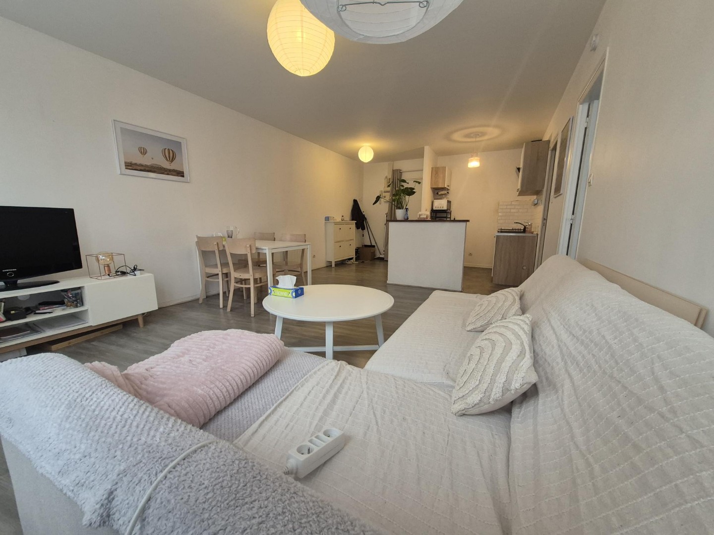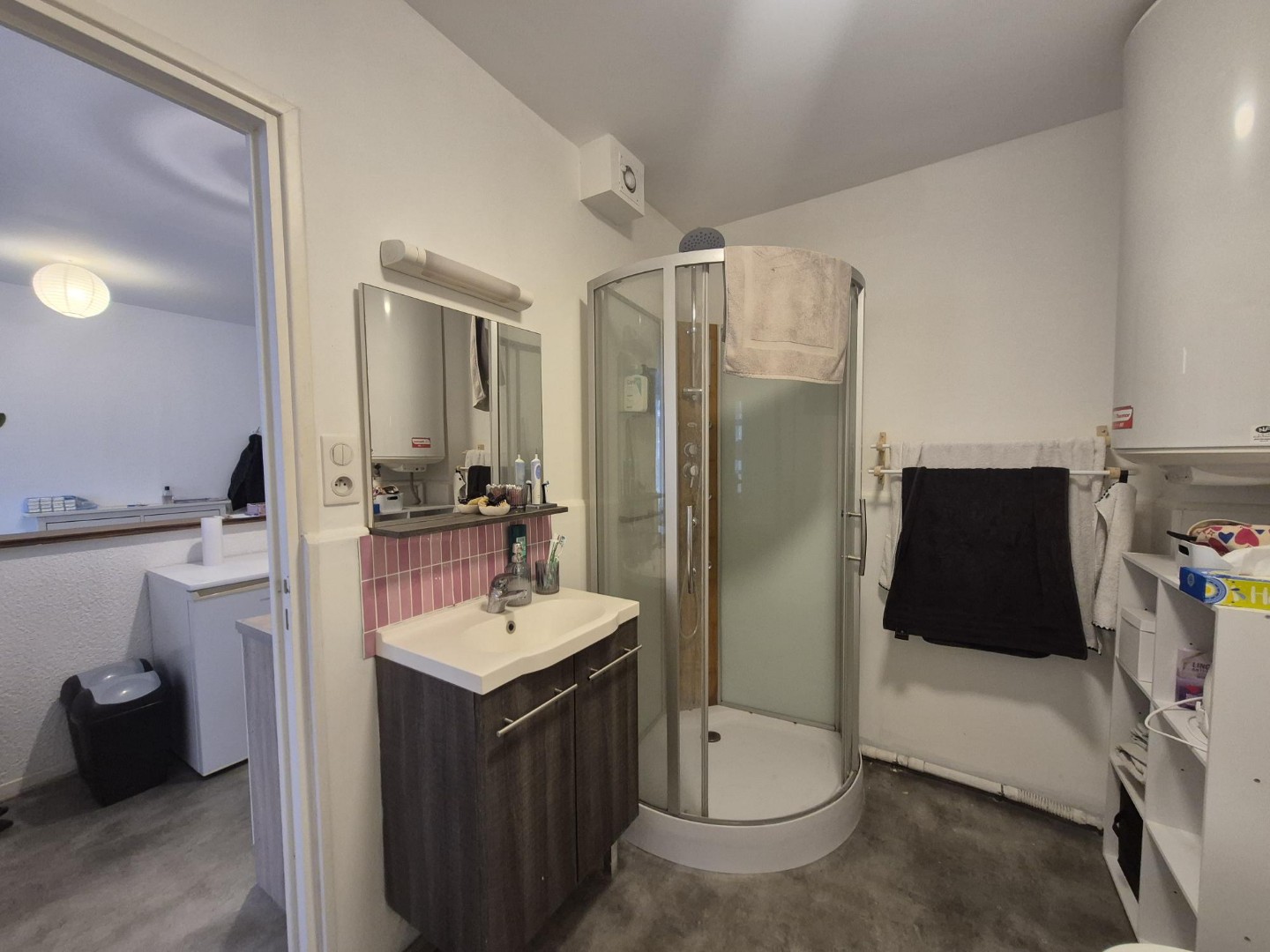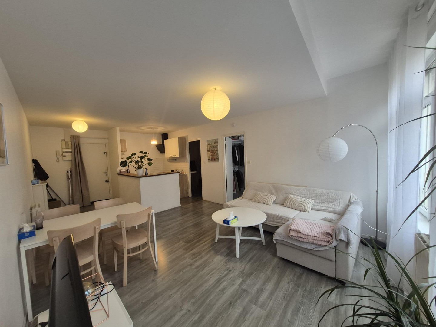 Appartement au 1er étage, comprenant une entrée – un séjour avec coin cuisine (gazinière et machine à laver) – une salle de bains avec douche – une chambre (avec dressing et meuble à chaussures) chauffage électrique Centre ville – proche gare et lycées – Les informations sur les risques auxquels ce bien est exposé sont disponibles sur le site Géorisques : www.georisques.gouv.fr