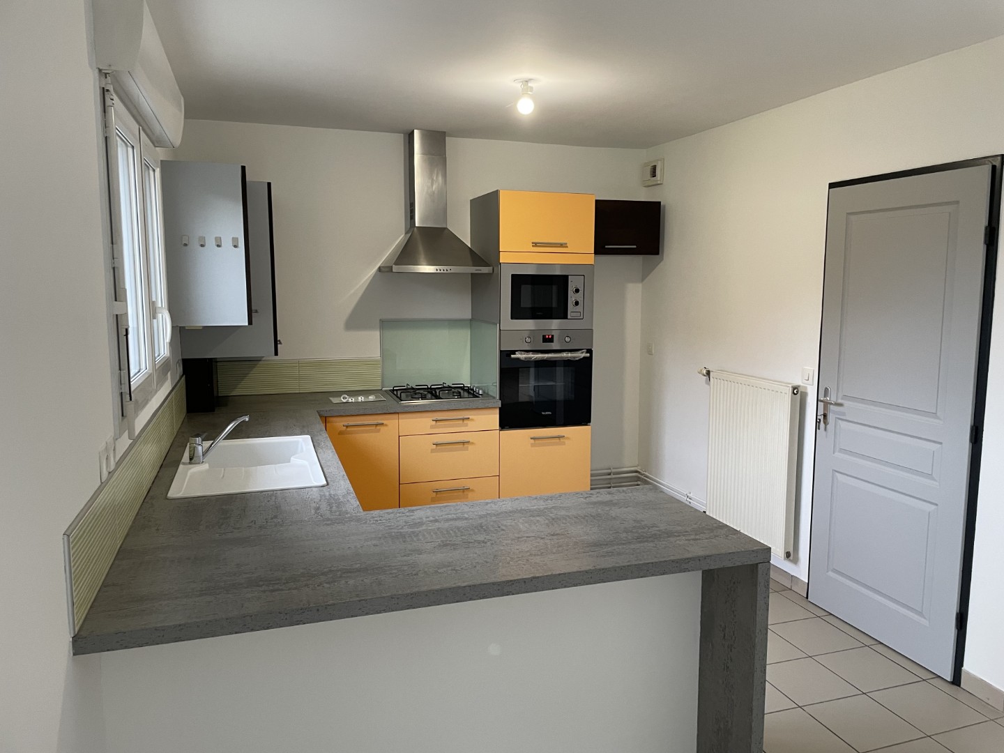Maison comprenant entrée, salon – séjour avec cuisine ouverte, wc. A l’étage : palier desservant 3 chambres, salle de bains avec baignoire, wc indépendant. Garage, Jardin avec terrasse. Chauffage central au gaz. – Les informations sur les risques auxquels ce bien est exposé sont disponibles sur le site Géorisques : www.georisques.gouv.fr