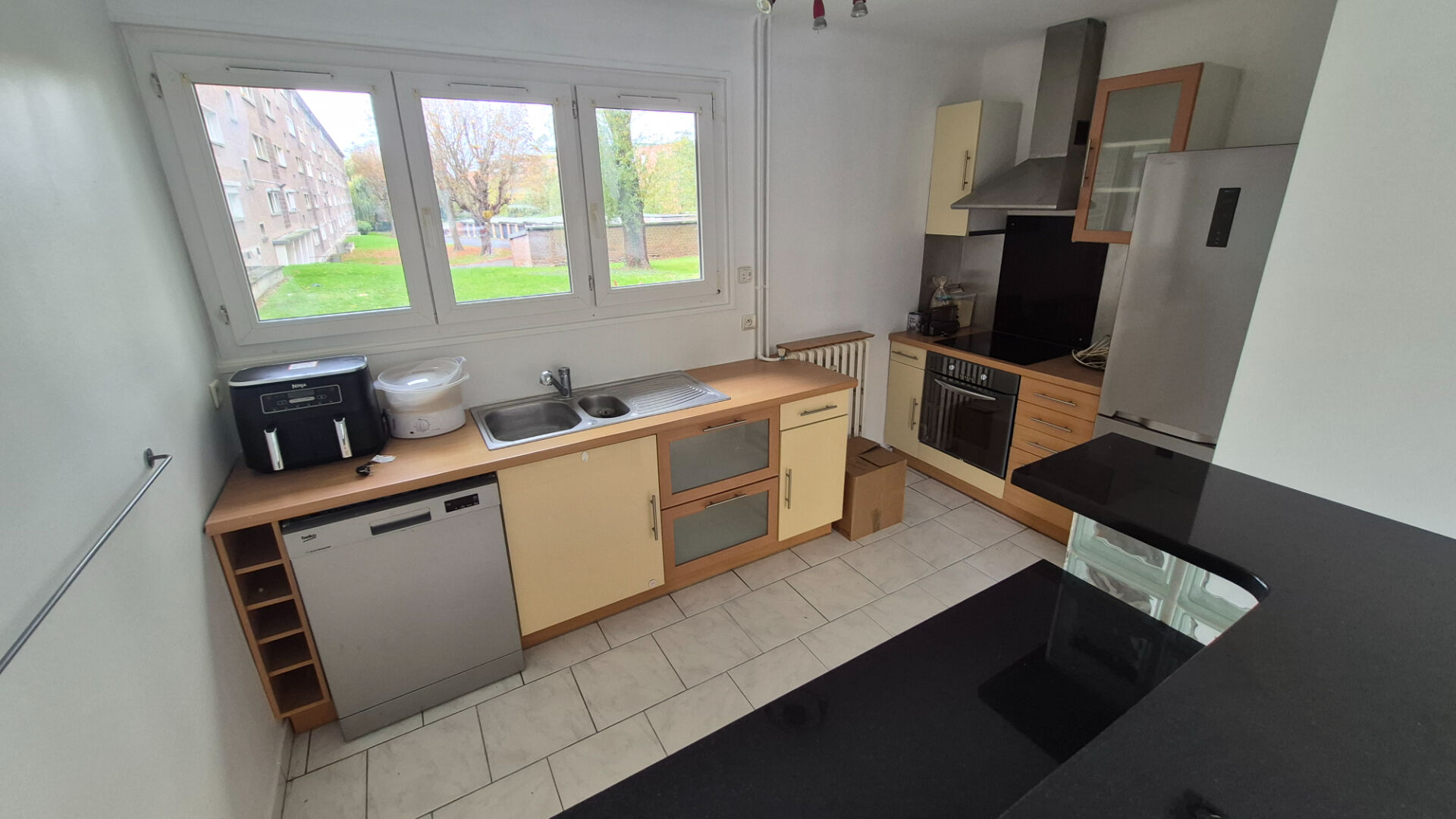 Cet appartement rénové au goût du jour bénéficie d’une cuisine équipée ouverte sur un séjour lumineux ;