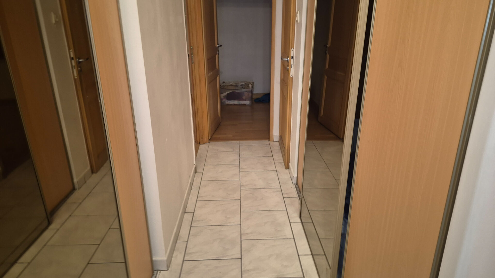 D’un couloir avec placards de rangement de chaque côté;