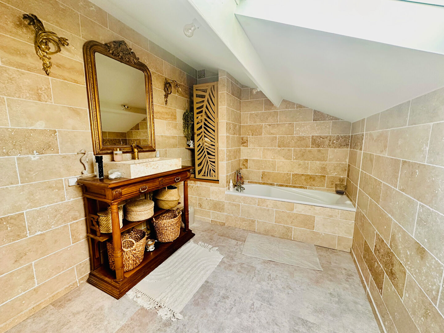 Pour l’extérieur un beau jardin paysagé, un carport moto, un atelier et deux terrasses complètent ce bien.