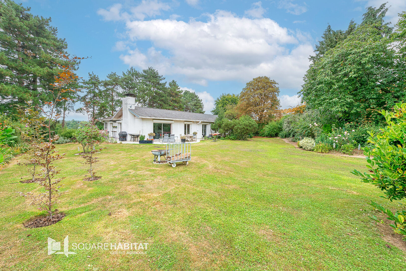 SQUARE HABITAT ONNAING vous présente ce joli pavillon individuel de plain pied de 160 m² avec un sous-sol complet érigé sur une parcelle de 3100 m² idéalement situé dans une rue extrêmement calme.