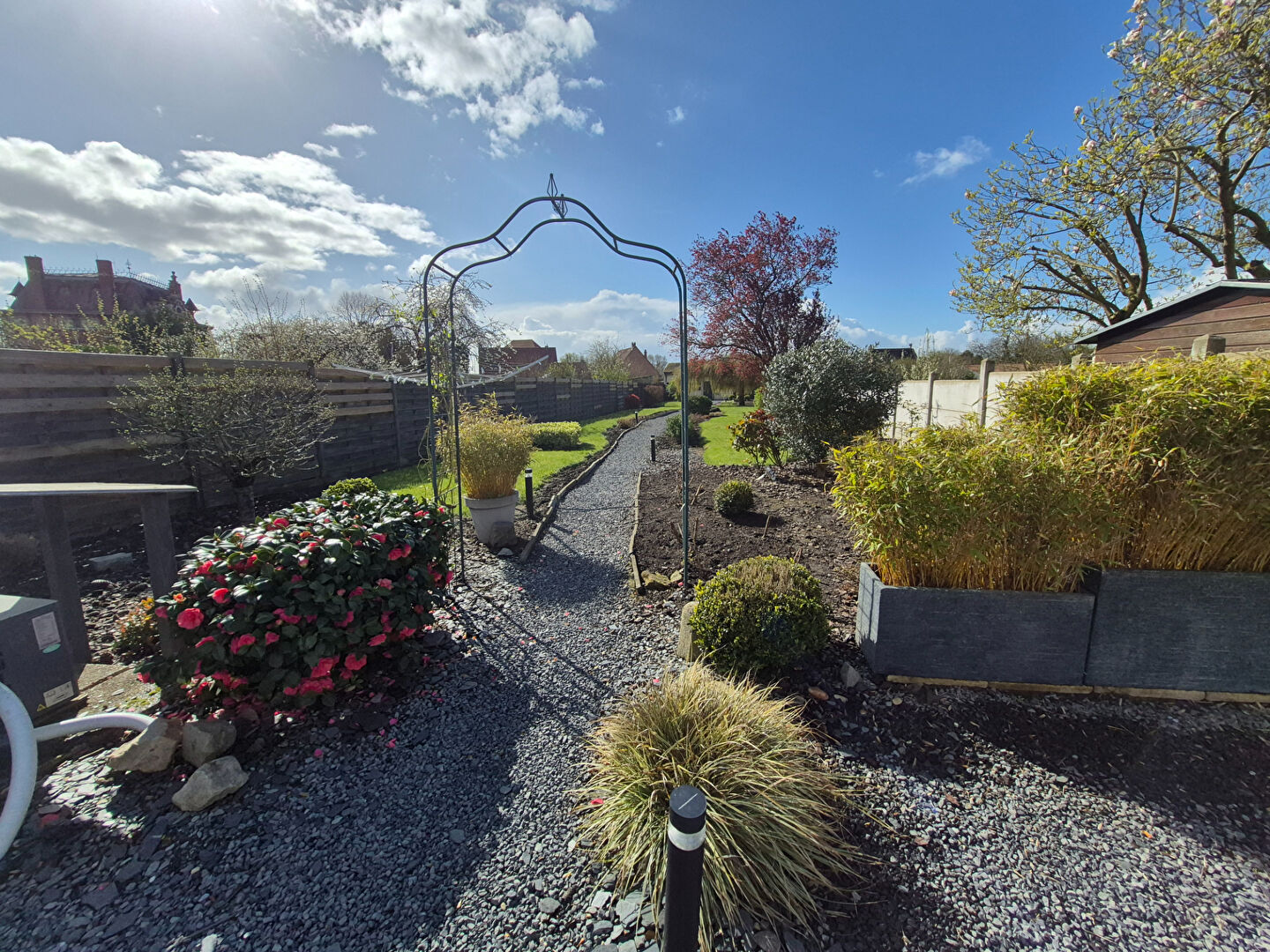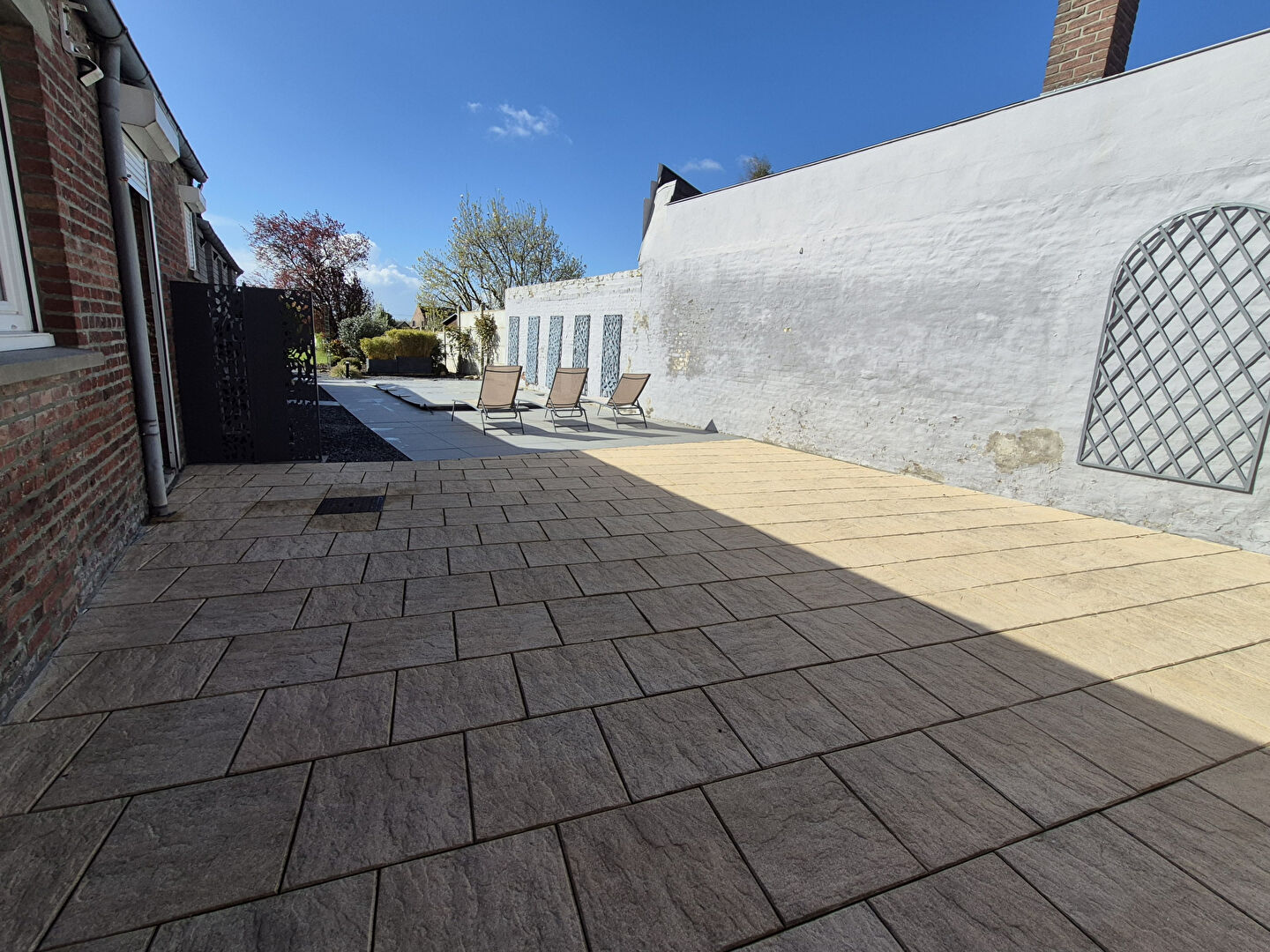 Côté extérieur, un jardin arboré entièrement clôturé avec terrasse d’environ 70m² exposée sud et une piscine chauffée!!!