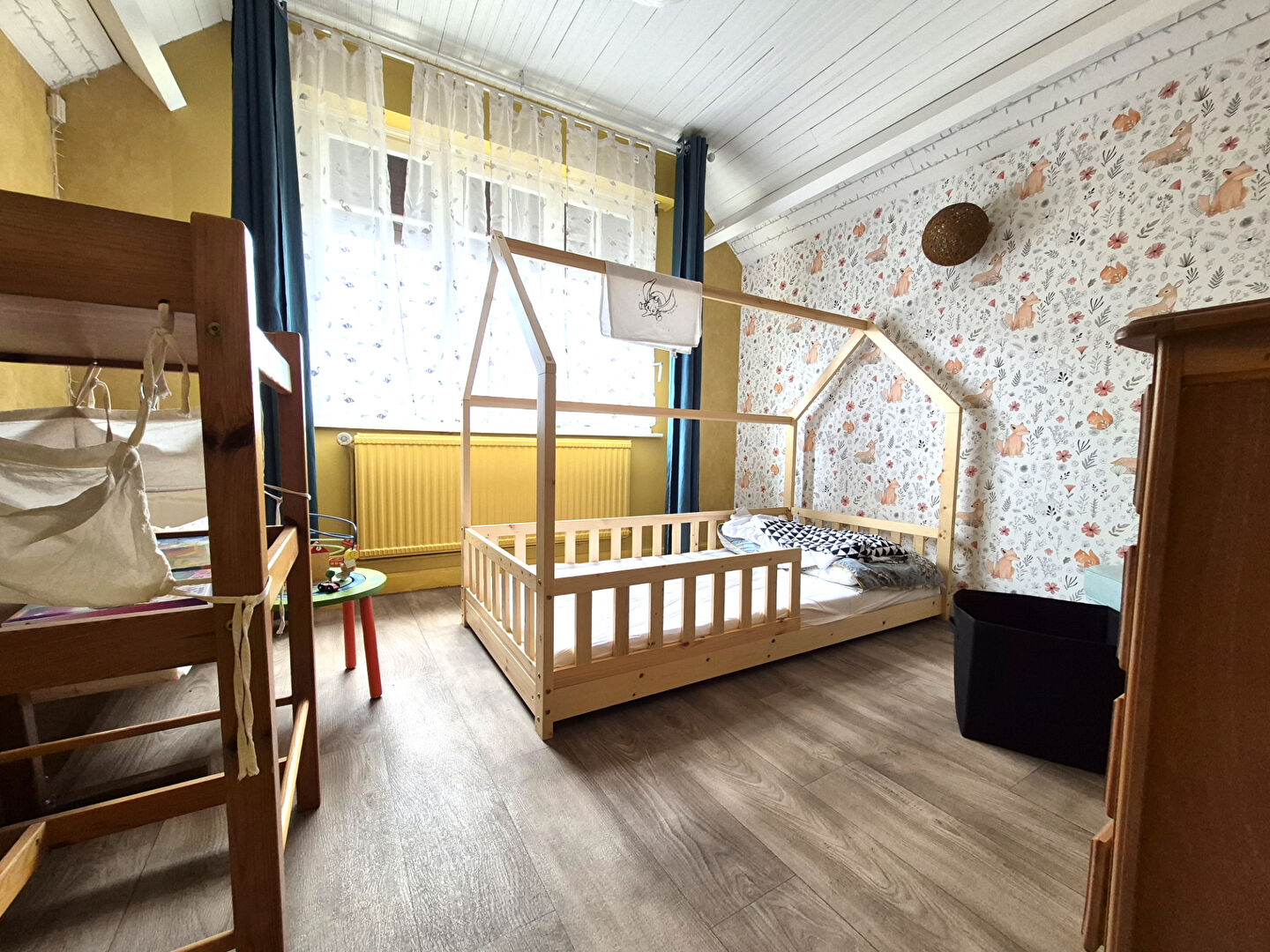 Maison d’environ 103m² comprenant une entrée-couloir, salon-séjour et cheminée feu de bois, une extension d’environ 25m² avec poêle à granule, cuisine équipée, une chambre, une salle de bains, w-c.