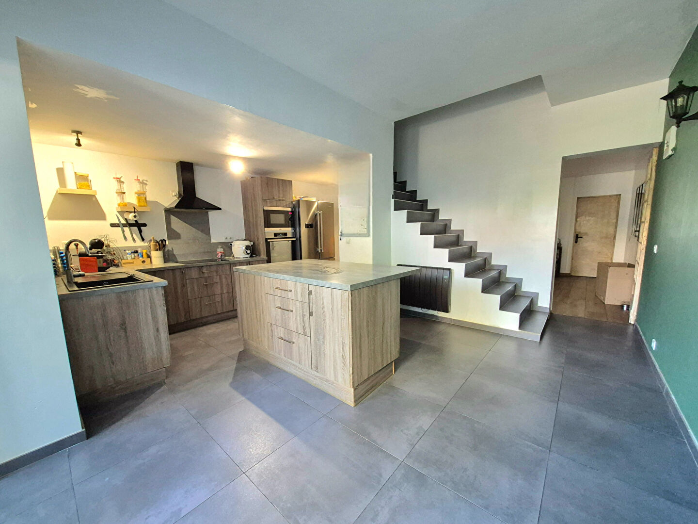 Un Hall d’entrée accueillant s’ouvre sur un large séjour en L agrémenté d’un insert à feu de bois, permettant d’accéder à une spacieuse cuisine équipée fermée dotée d’un ilot central idéale pour les moments de convivialité.