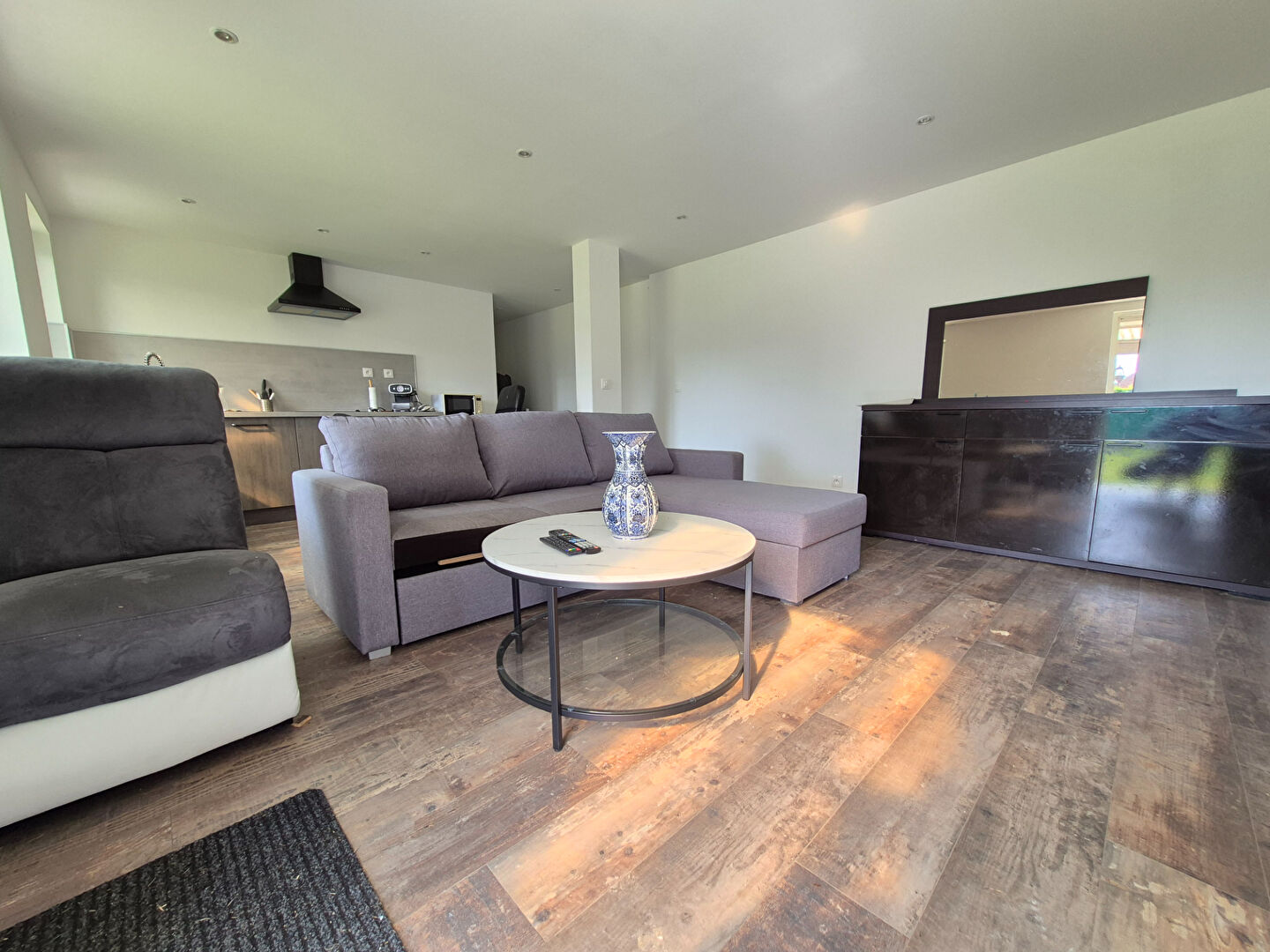 Il dispose d’un vaste salon séjour lumineux ouvert sur cuisine équipée,
