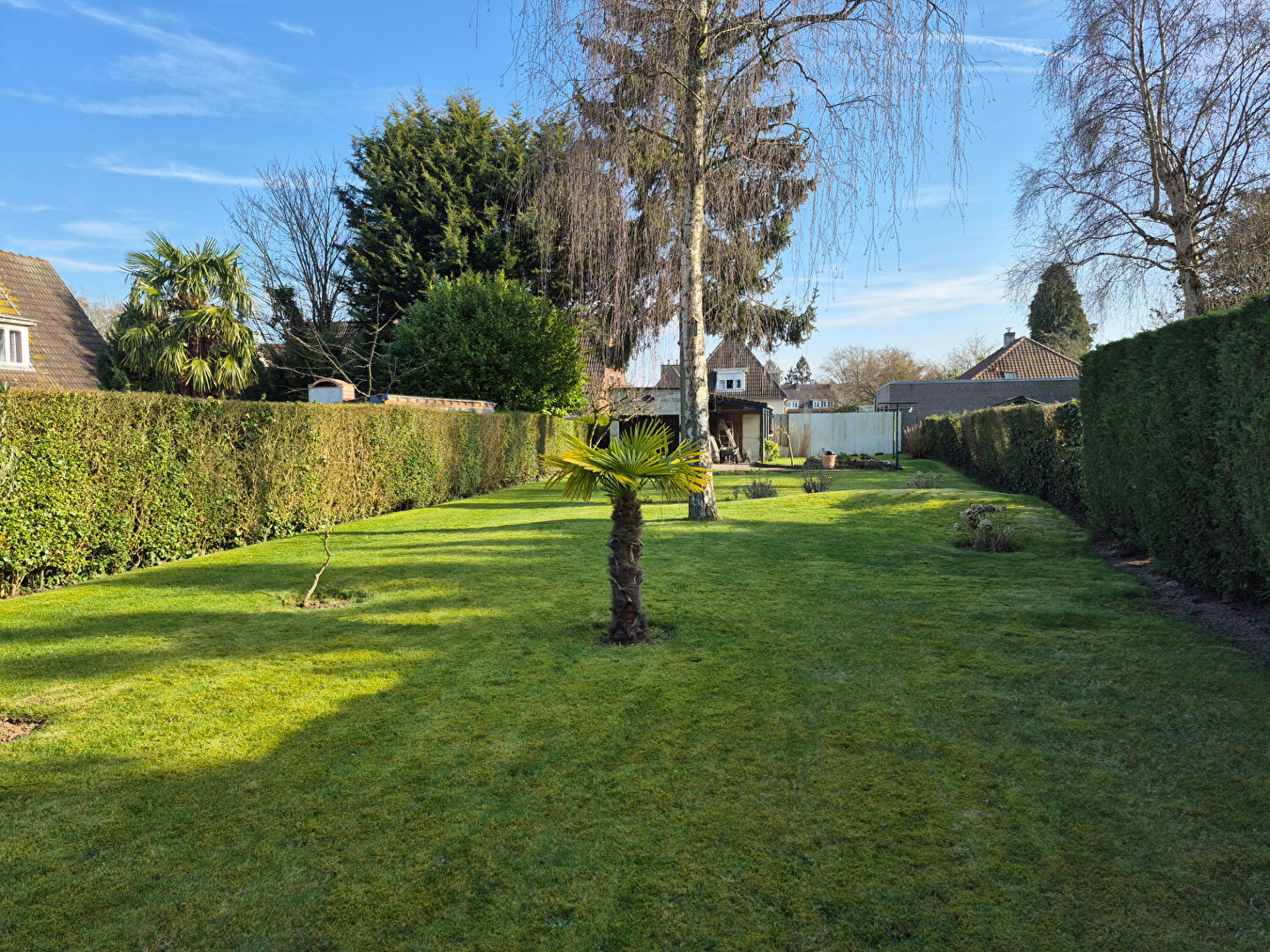 Ce bien bénéficie d’un grand jardin planté très bien entretenu, d’un garage de 30 M2 env., de 3 places de stationnement privées et également d’une cave.