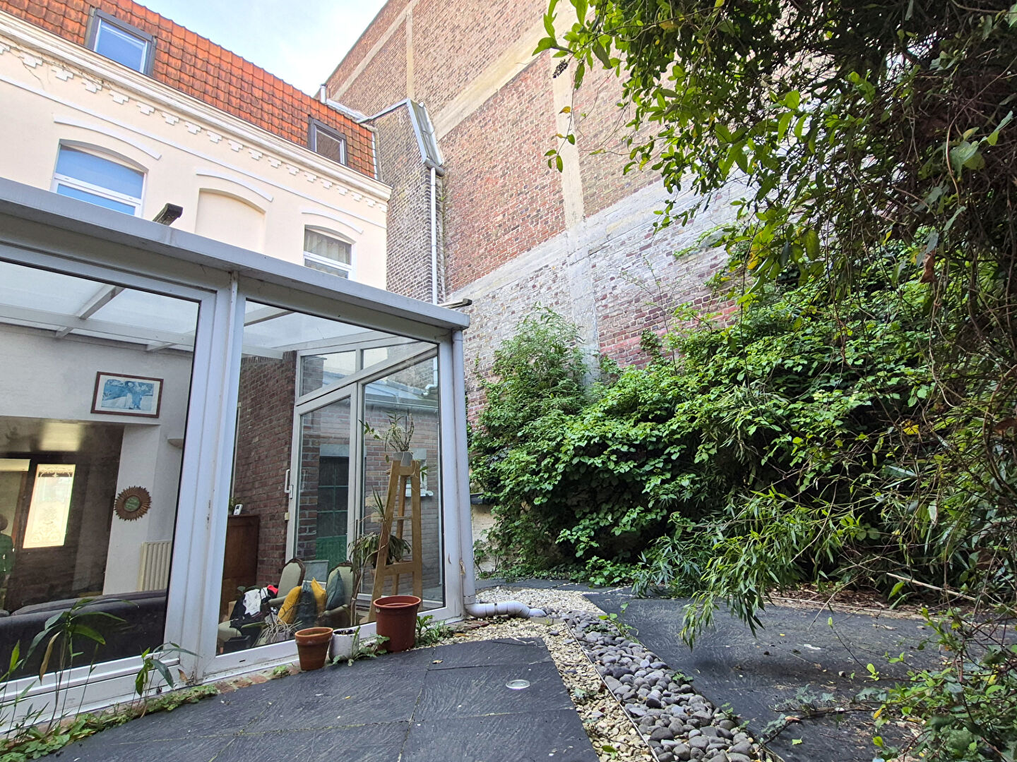 BOULEVARD GAMBETTA – A quelques pas du tramway et du métro, Maison familiale forte de 182 m² habitables composée au rez-de-chaussée d’une grande cuisine dinatoire, d’une salle à manger et d’un salon niché sous la verrière, près d’un insert à pellets ; au premier étage une salle de bains et de 2 chambres ; au second d’une salle de douche et de 3 chambres. Ce n’est pas terminé : terrasse végétalisée d’environ 35 m² ; garage ; sous-sol complet. Question technique : chauffage central gaz avec chaudière de janvier 2026, tout-à-l’égout, une maison très saine avec un potentiel indéniable de personnalisation, de transformation. L’opportunité d’y créer la maison qui vous ressemble.
