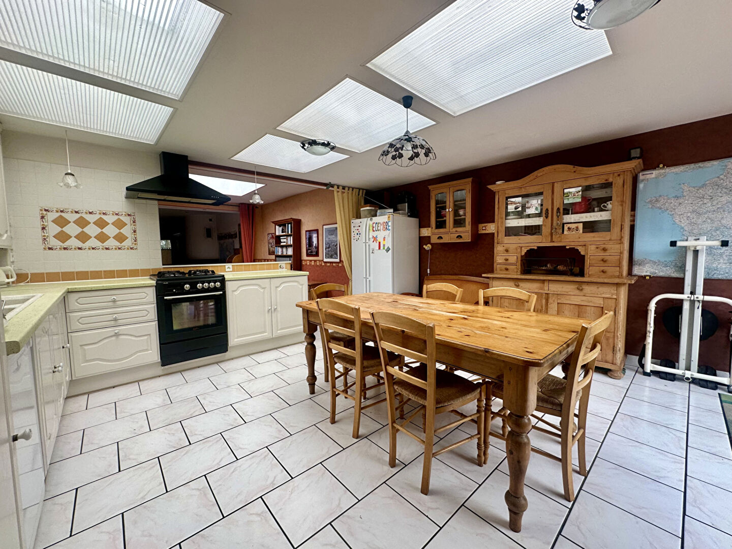 Dans son prolongement, une spacieuse cuisine lumineuse séduit par sa fonctionnalité et sa belle ouverture sur l’extérieur, avec une vue directe sur la terrasse et le jardin.