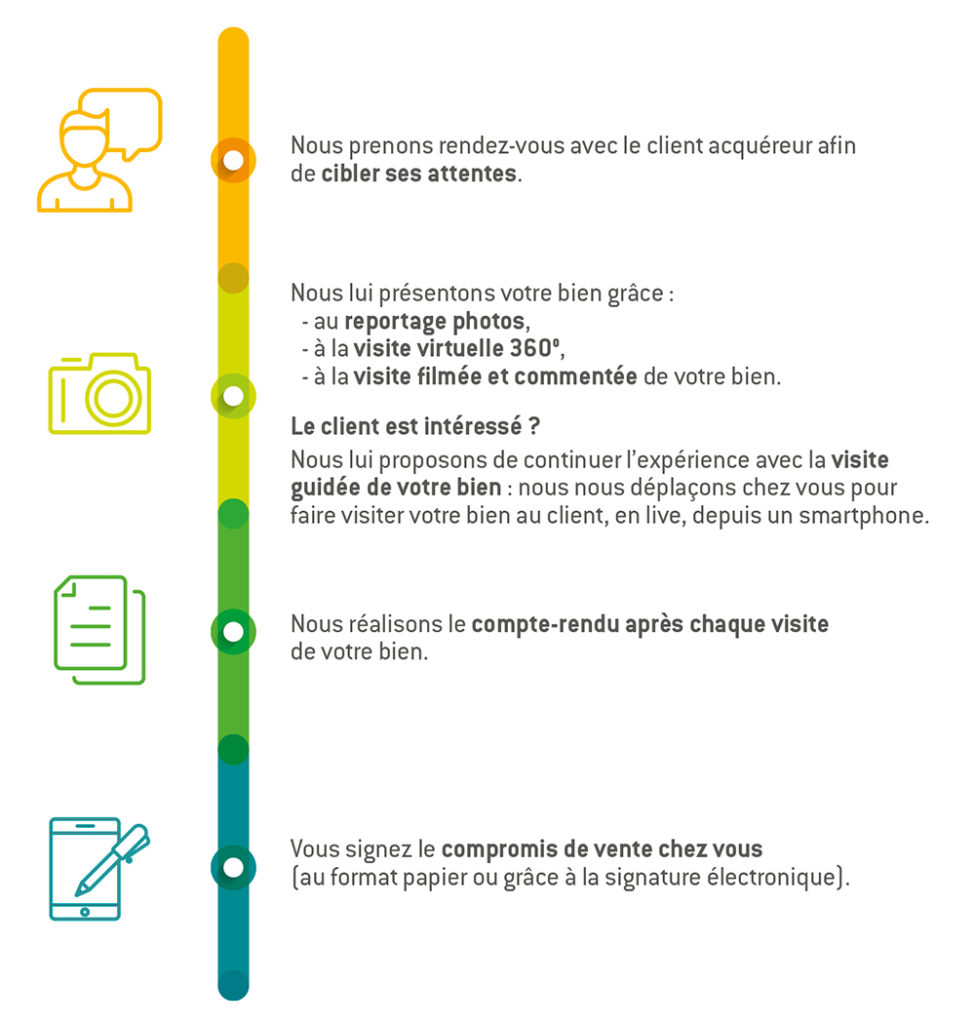 - Votre conseiller immobilier se déplace chez vous et réalise une visite guidée du bien à vendre via son téléphone, en live.